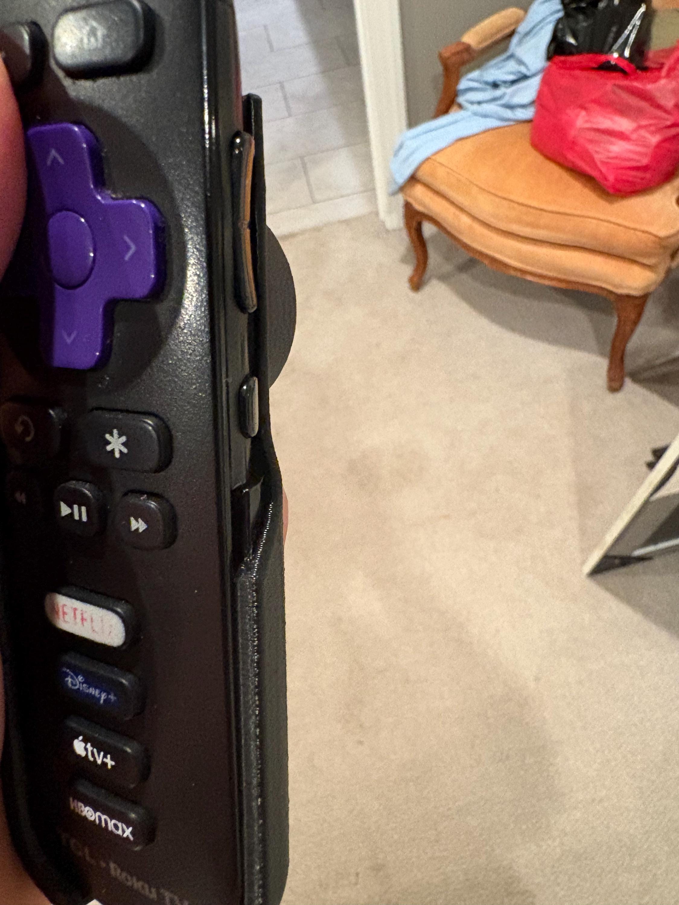 The Roku remotes are small and compact, which makes them ideal for getting lost. The custom designed sleeve is designed to hold an AirTag, then snap onto the Roku Remote.